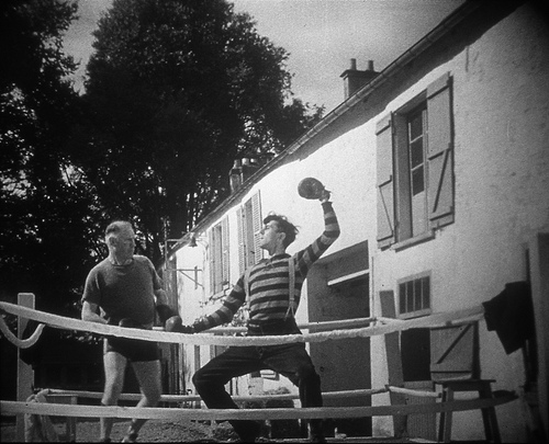 The simple story has Tati's character working on a farm when he meets a boxer who is in training nearby. The early parts are pleasant, if a little slow, but when Tati gets in the ring with the boxer, the pace starts to build up quickly, leading to a madcap climax. It makes fairly good use of the opportunities, and it is particularly funny to see Tati's character keep trying to refer to the boxing manual. It's a good gag, and not an easy one to pull off that smoothly.