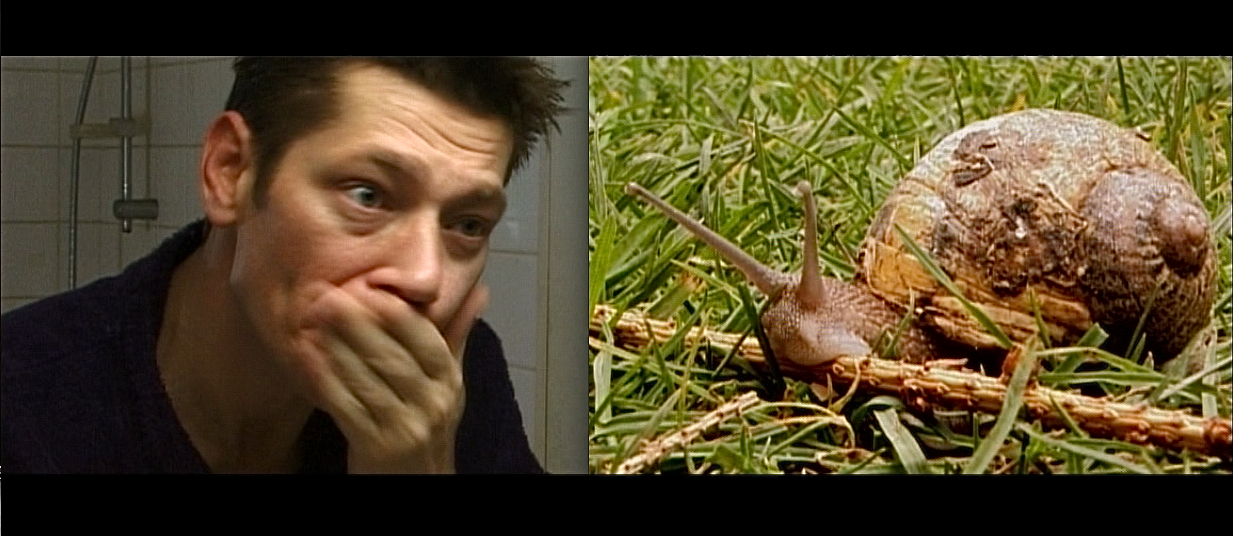 Unexpected meeting between a businessman and a gastropod.