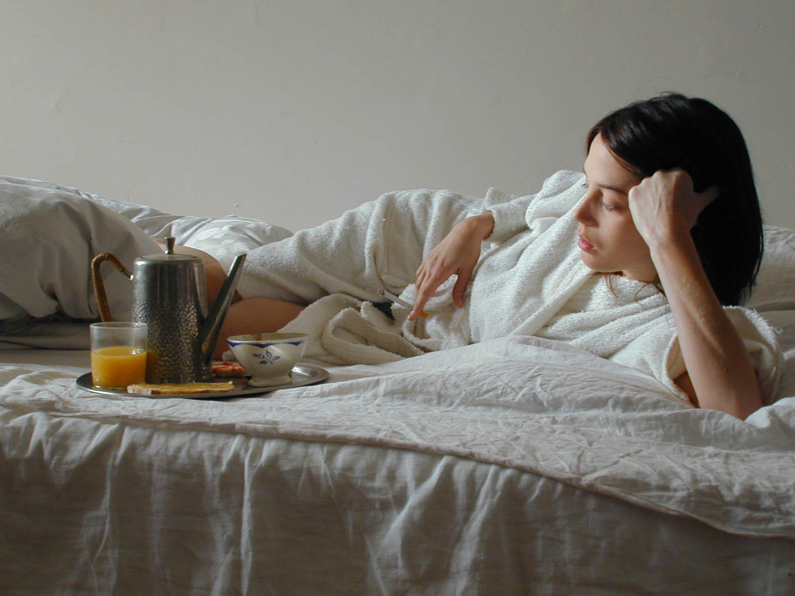 During an evening, a young woman gets into a flat. She hides in a small room without the knowledge of the couple living in the flat. While they're away, she moves in.