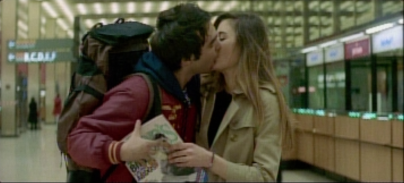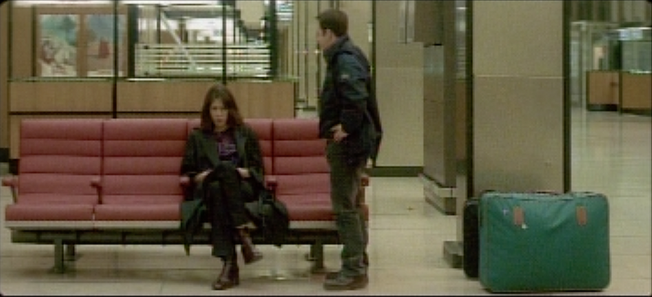 At the airport, a young man goes to a crying youg woman.