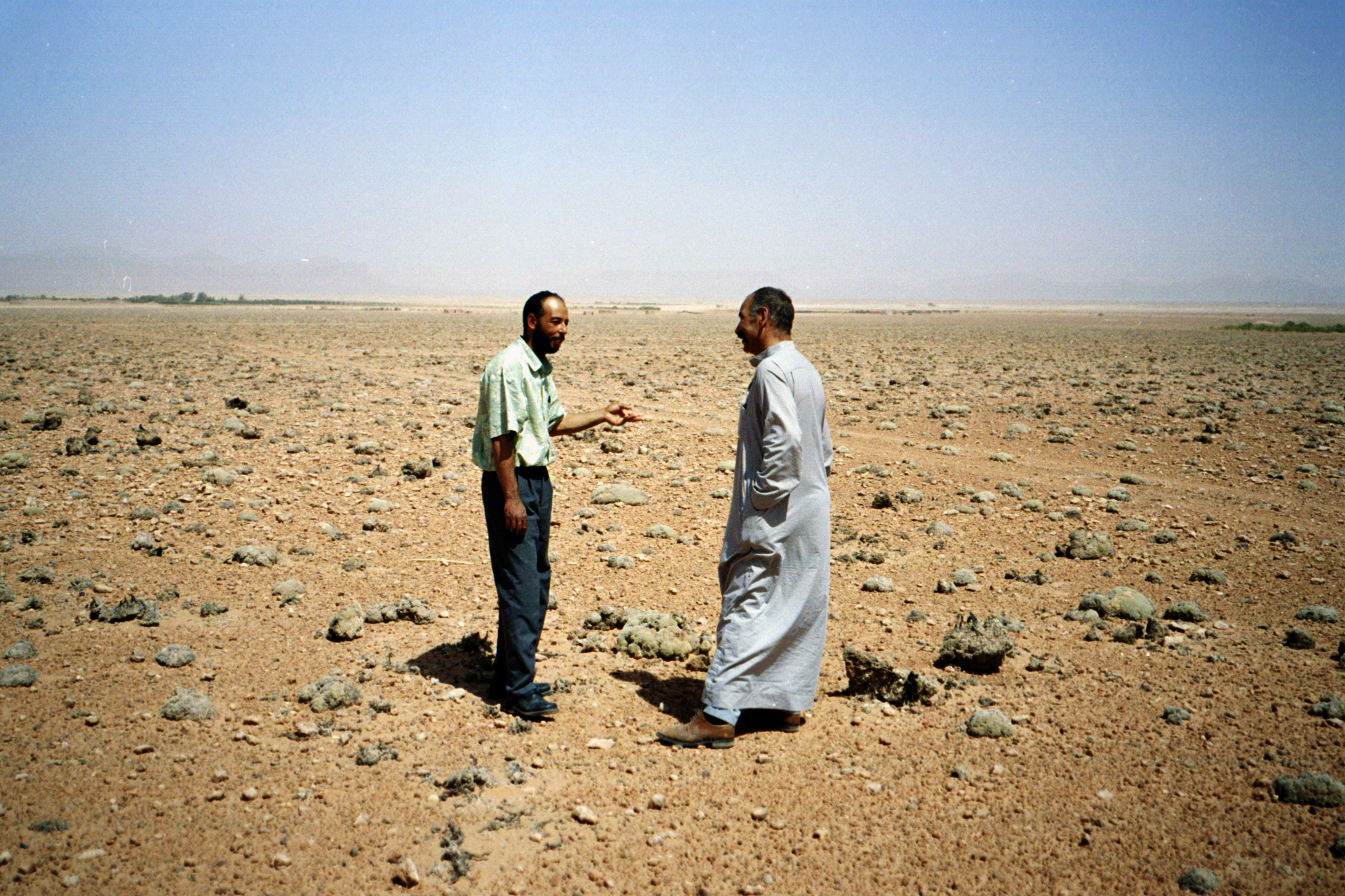 The film is the story of an encounter between two Moroccans, one living in a housing project in Evry, on the outskirts of Paris, the other living in South-East Morocco, in the Mengoub desert.