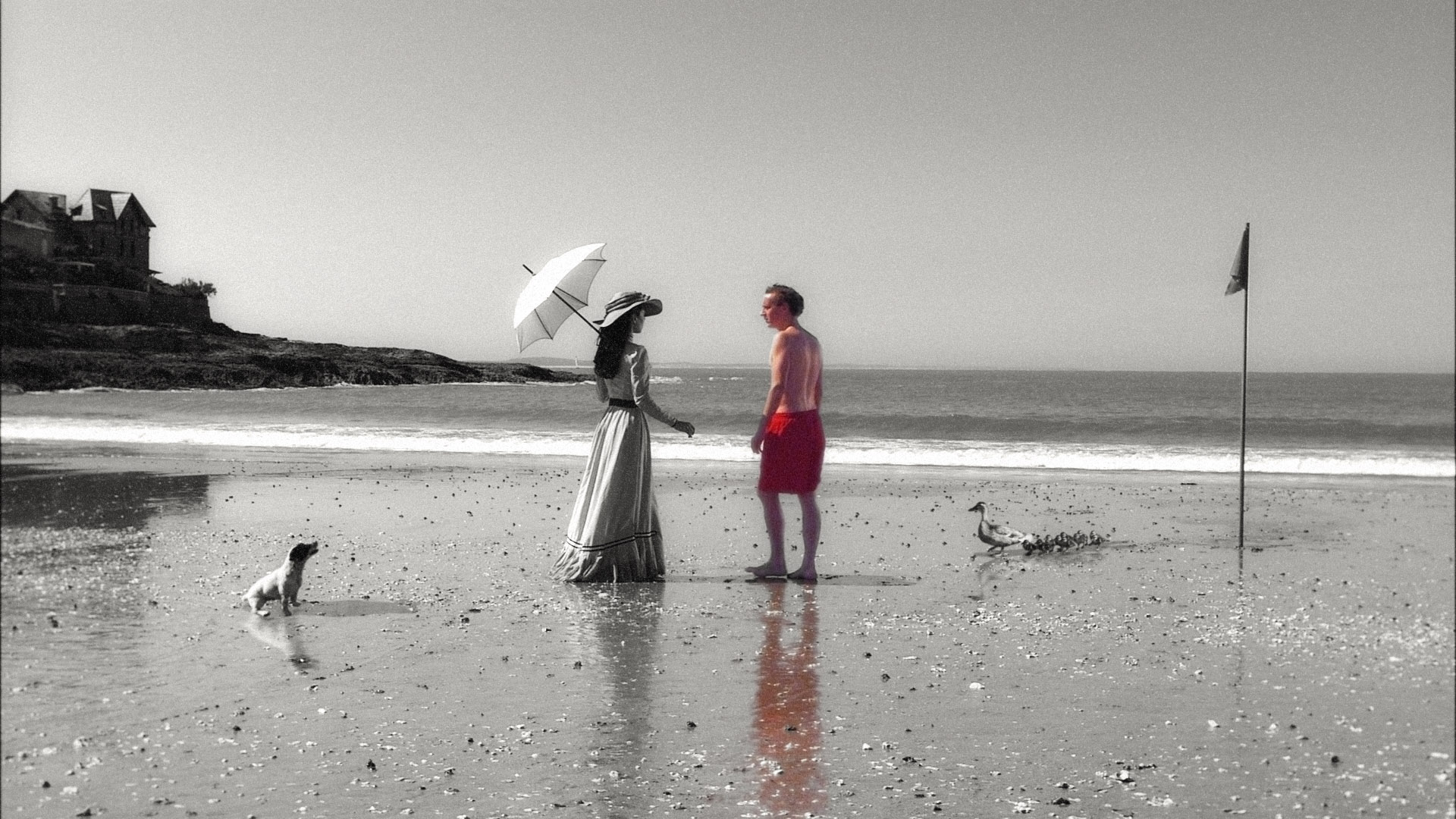 A young man who lives in a colored postcard falls in love with a young woman who lives in a black and white postcard. He is ready to do anything to join her and stay with her.