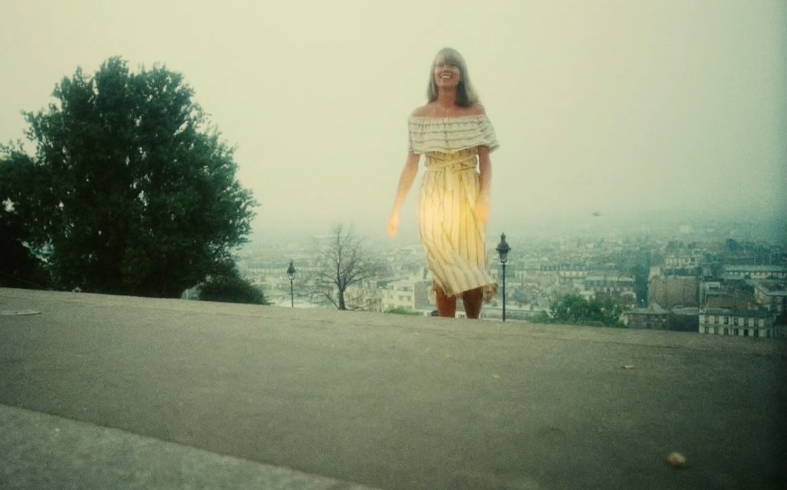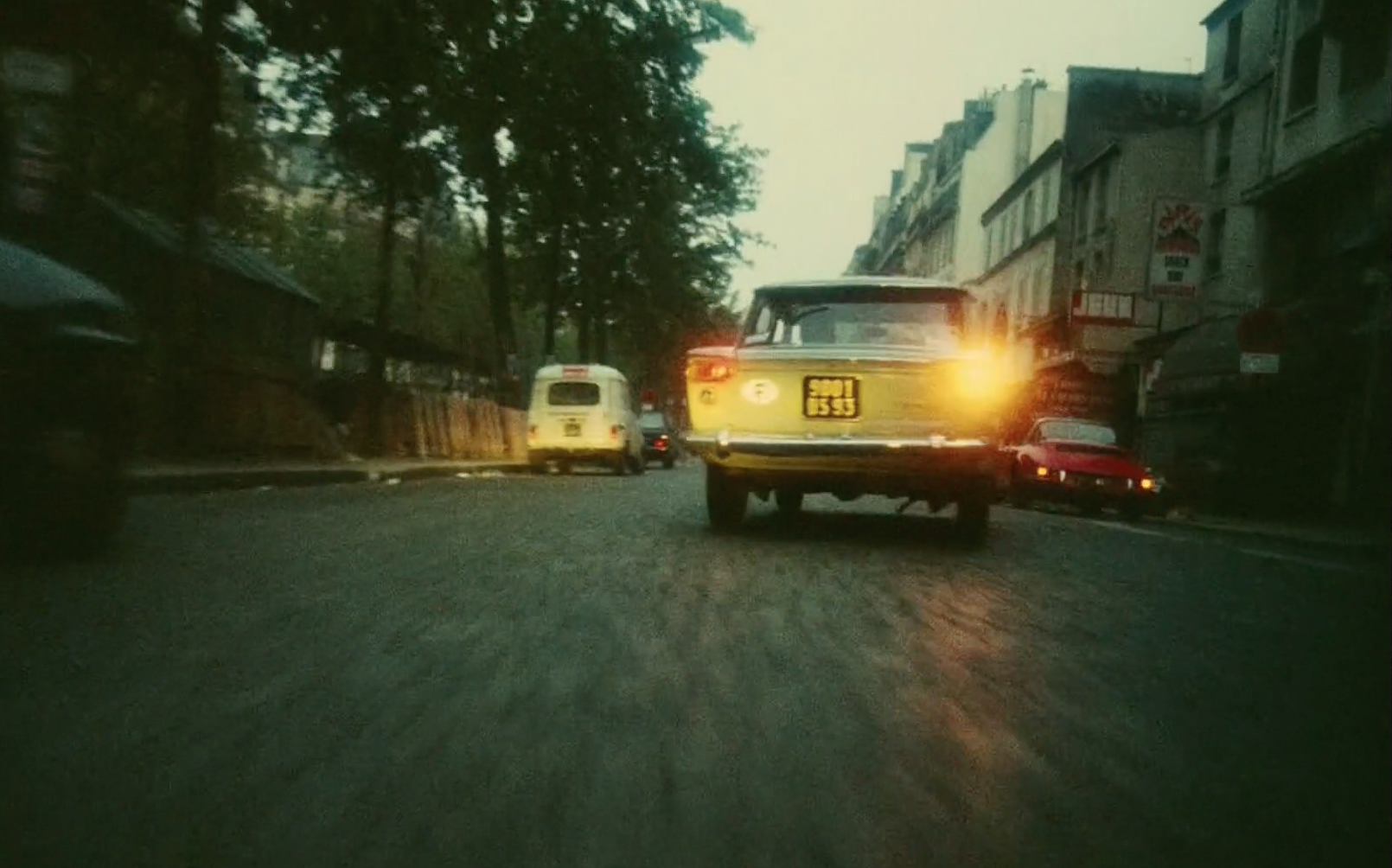 The film shows an eight-minute drive through Paris in the early hours of the morning (05:30hrs) in August 1976, accompanied by sounds of a high-reving engine, gear changes and squealing tires. It starts in a tunnel of the Paris Périphérique at Porte Dauphine, with an onboard view from an unseen car exiting up on a ramp (and from there following this route) to Avenue Foch. Well-known landmarks such as the Arc de Triomphe, Opéra Garnier, and Place de la Concorde with its obelisk are passed, as well as the Champs-Élysées. Pedestrians are passed, pigeons sitting on the streets are scattered, red lights are ignored, one-way streets are driven up the wrong way, center lines are crossed, the car drives on the sidewalk to avoid a rubbish truck. The car is never seen as the camera seems to be attached below the front bumper (judging from the relative positions of other cars, the visible headlight beam and the final shot when the car is parked in front of a curb on Montmartre, with the famous Sacré Cœur Basilica behind, and out of shot). Here, the driver gets out and embraces a young blonde woman as bells ring in the background, with the famous backdrop of Paris.