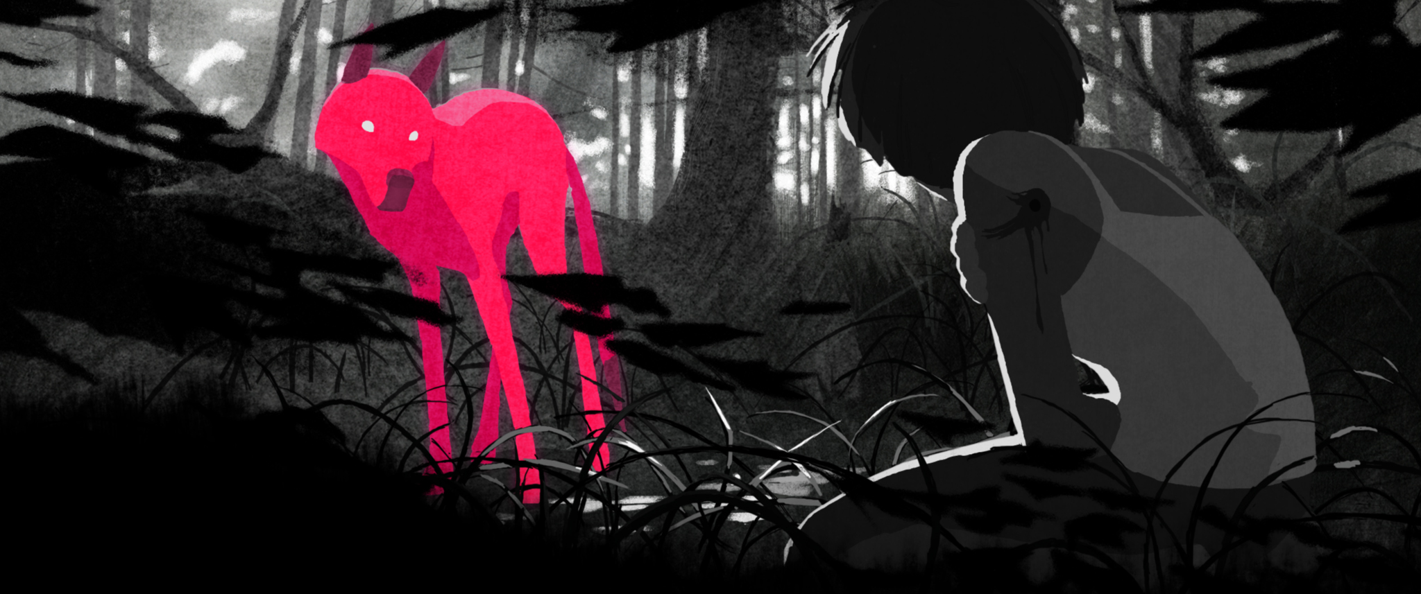 Éda flees. She drives fast, too fast. When a pink dog appears in her headlights, it is an accident. Frightened by the strange animal, she rushes into the forest where her father leads the hunting. Prey among preys, Éda has no other choice than to confront him.