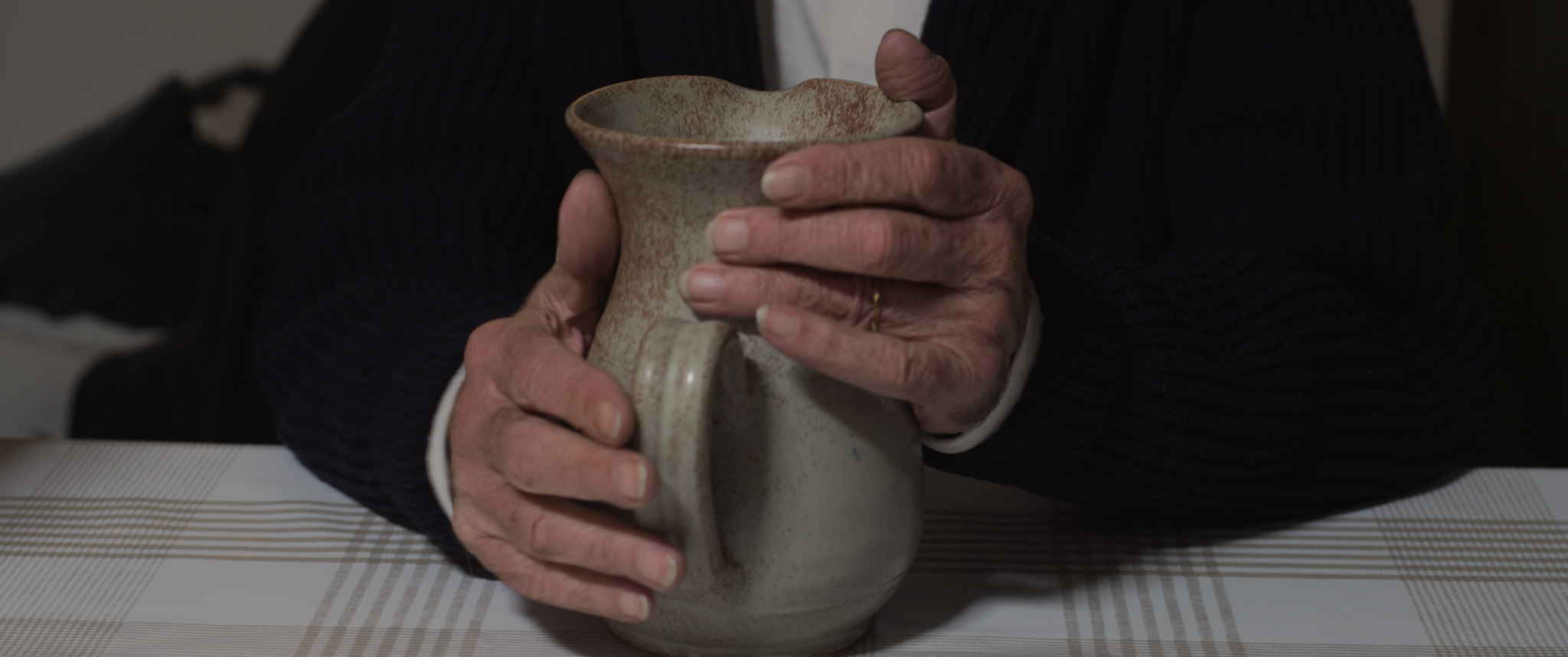 An old couple. The evening routine. It’s been years since he last looked at her.