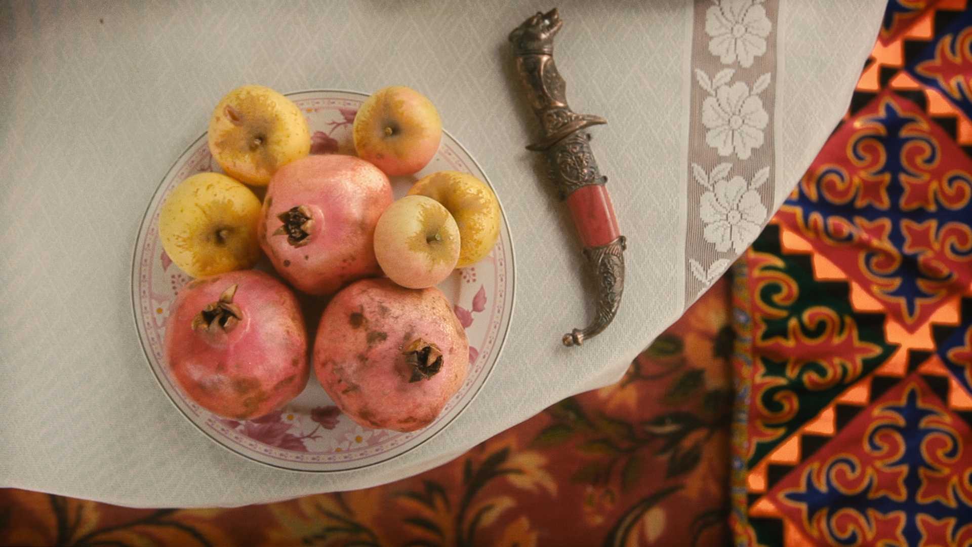 While searching for the family treasure, once hidden by his great-grandfather under a cherry tree in his garden, six-year-old Sholpan finds, instead of diamonds, a magic mirror in which the nostalgia of the distant past and the mysterious future unite in a beautiful present, to the music of a Kazakh national shamanic instrument, the kobyz.
