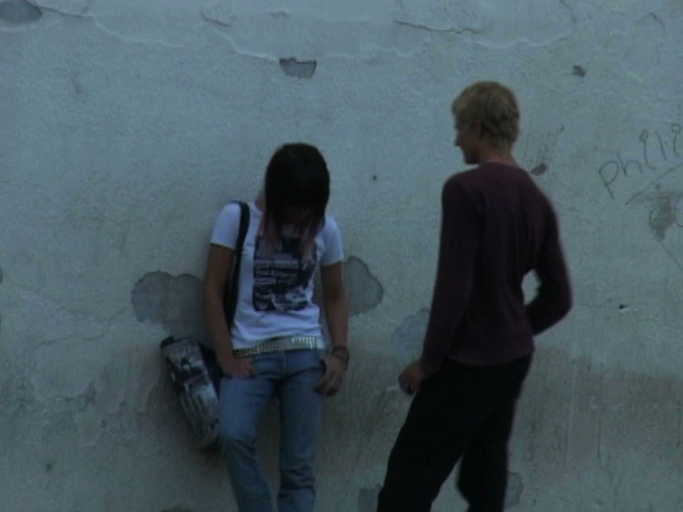 In the middle of a public housing project, a girl and boy wait for something. Little by little, brief laughter and lost silences reveal two beings facing their desire. Two beings who must cross the distance separating them between a low wall masked by cars and a bus stop. To at last reach the body of the other, still opaque a moment earlier and suddenly revealed in its mystery. A fragment of life in a city. A fragment of a lover's discourse.