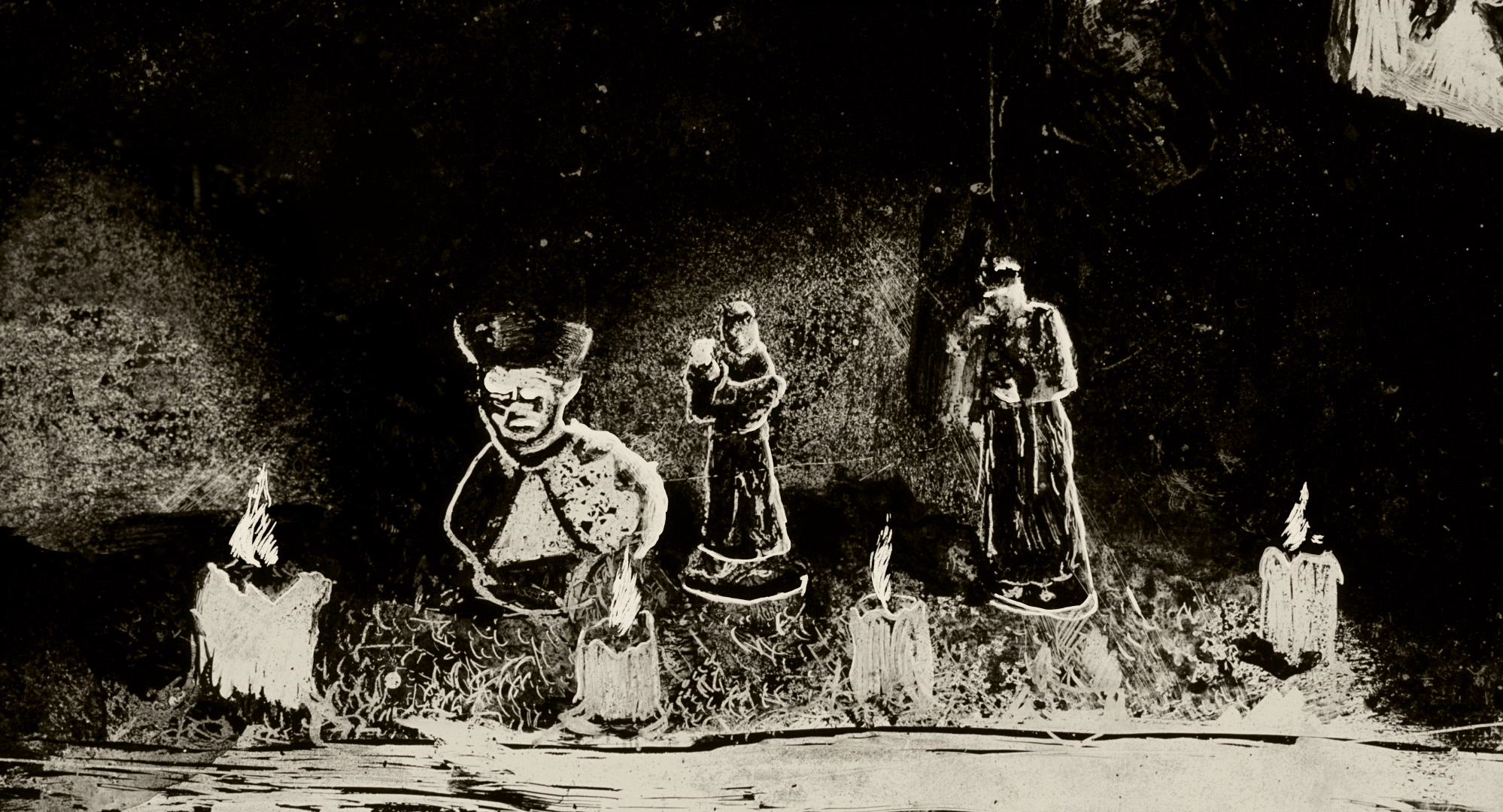 The filmmaker's grandmother has become a mystery ever since she lost her memory. Because of a family secret, merely evoking her life causes bodies to stiffen. With a process similar to engraving, this animation film borrows from the archaeology of the gesture, which consists of hollowing out, in order to reveal, through buried memories, a Creole identity.
