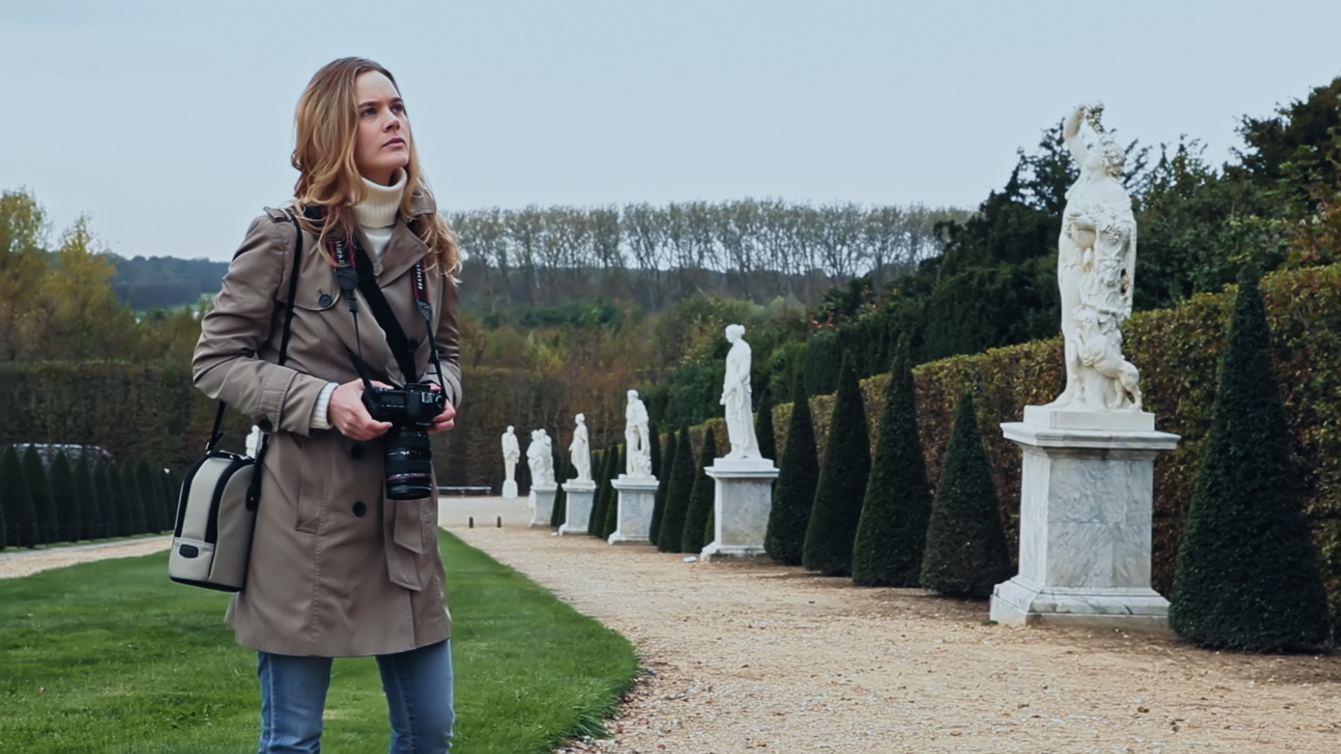 Hélène walks in the gardens of the Château of Versailles where she photographs the statues of ancient gods. Through her camera, she detects the presence of a statue which has come to life and prowls about her. She sneaks away, but the statue finds her. Hélène decides to confront it.