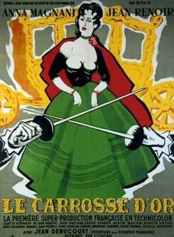 An Italian commedia dell'arte troupe arrives in a small Peruvian town in the 18th century. The chief aristocrat in the town, the Viceroy, has acquired a fabulous golden coach from Europe. He is planning to give it to his mistress, but then falls in love with Camilla, leading actress of the troupe, and gives it to her instead. Camilla, enjoying the high life of being the Viceroy's mistress, is also loved by the leader of the troupe, and by the local star toreador. The Viceroy’s ministers are shocked by his profligacy, and threaten to depose him. Camilla eventually solves the problem by donating the coach to the Bishop of Lima. Camilla returns to the theatre troupe, and the film ends with a celebration of theatre's superiority over life.