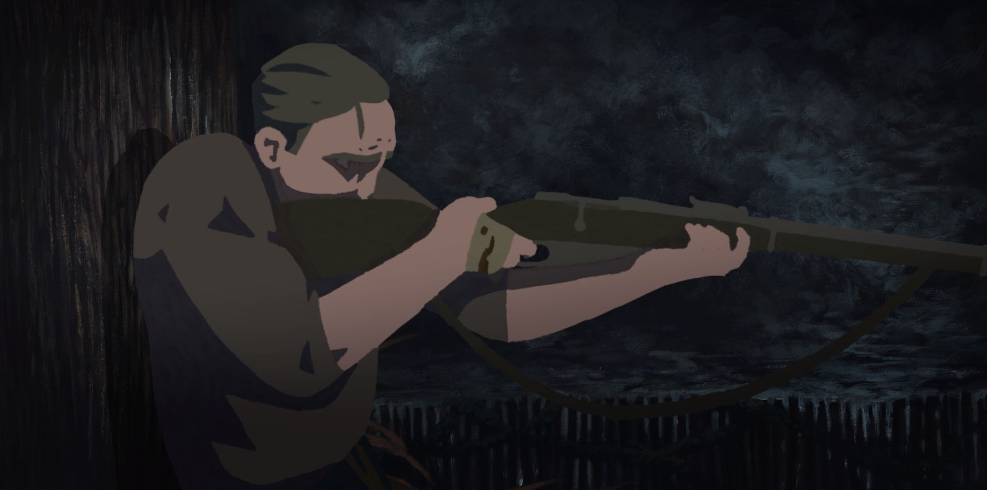 A young Polish partisan flees from the Warsaw Uprising. Whilst hiding in the yard of a countryside manor, he is chased up a tree by a large wolfhound. With his rifle out of reach, there seems to be no way to escape his predicament.