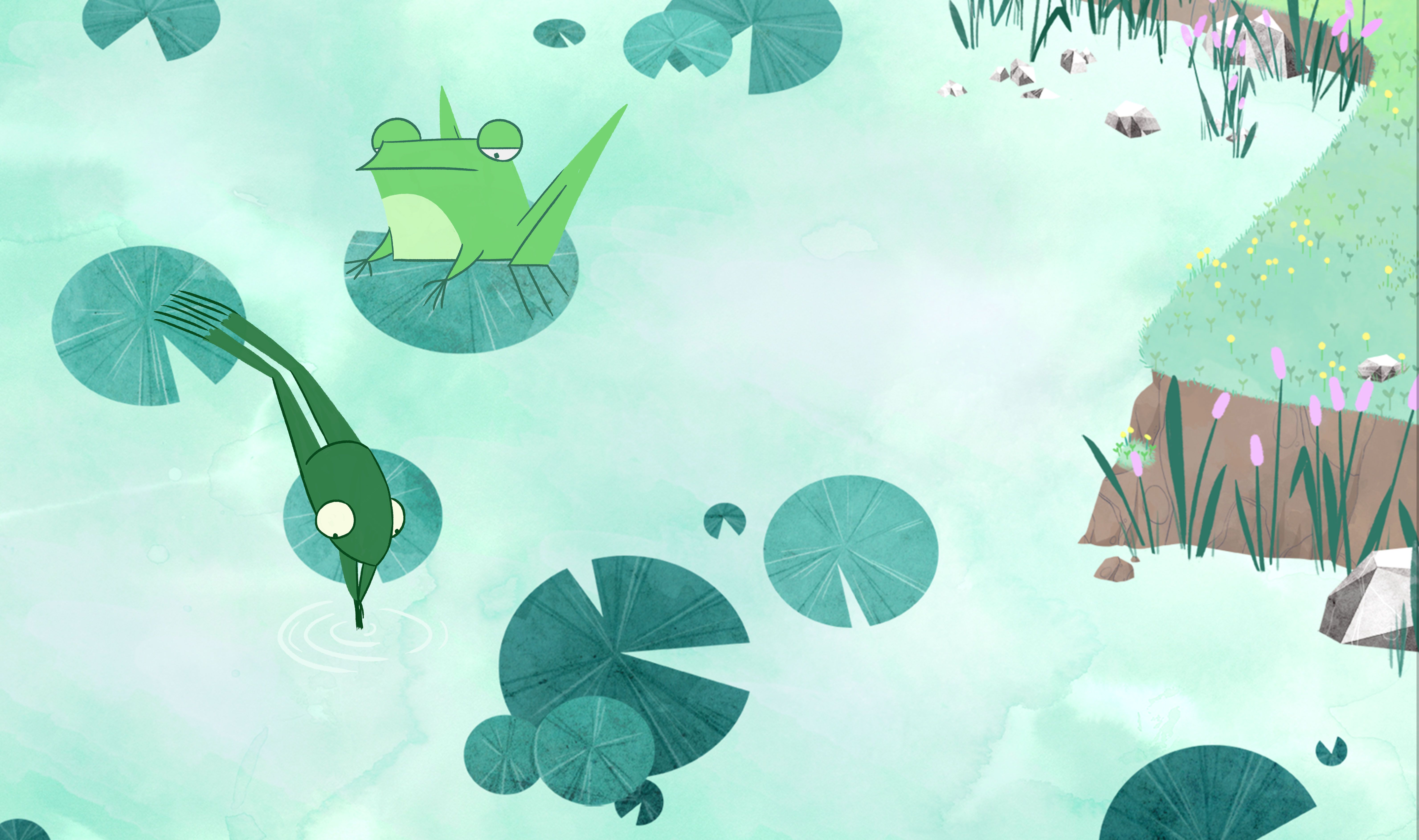 An inquisitive little frog with a large appetite goes off to discover the river bank in search of new things to eat. On her way, she meets some of the animals that live in the neighbourhood and asks them what they eat. Well what do you think herons, foxes and snakes eat?