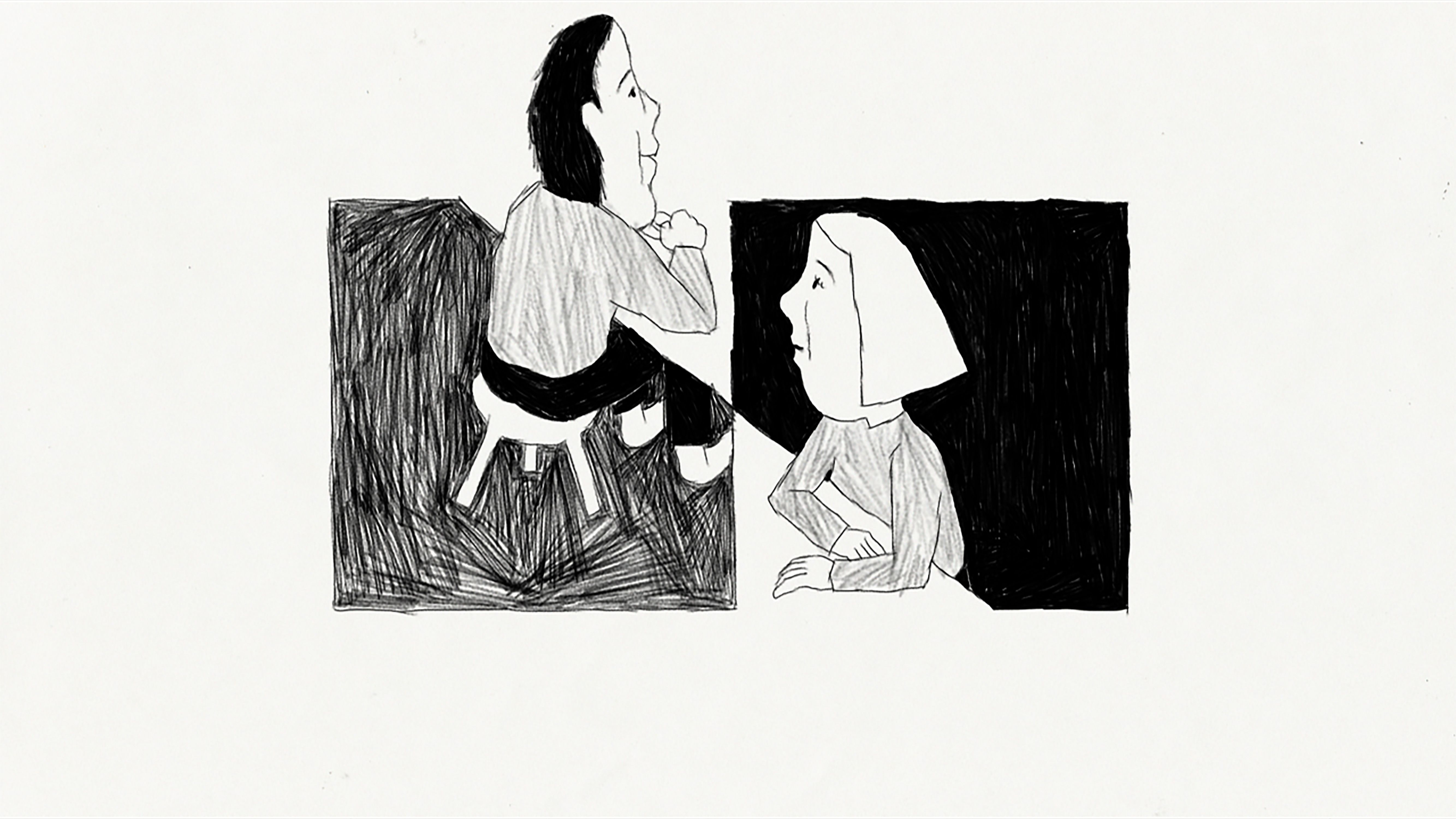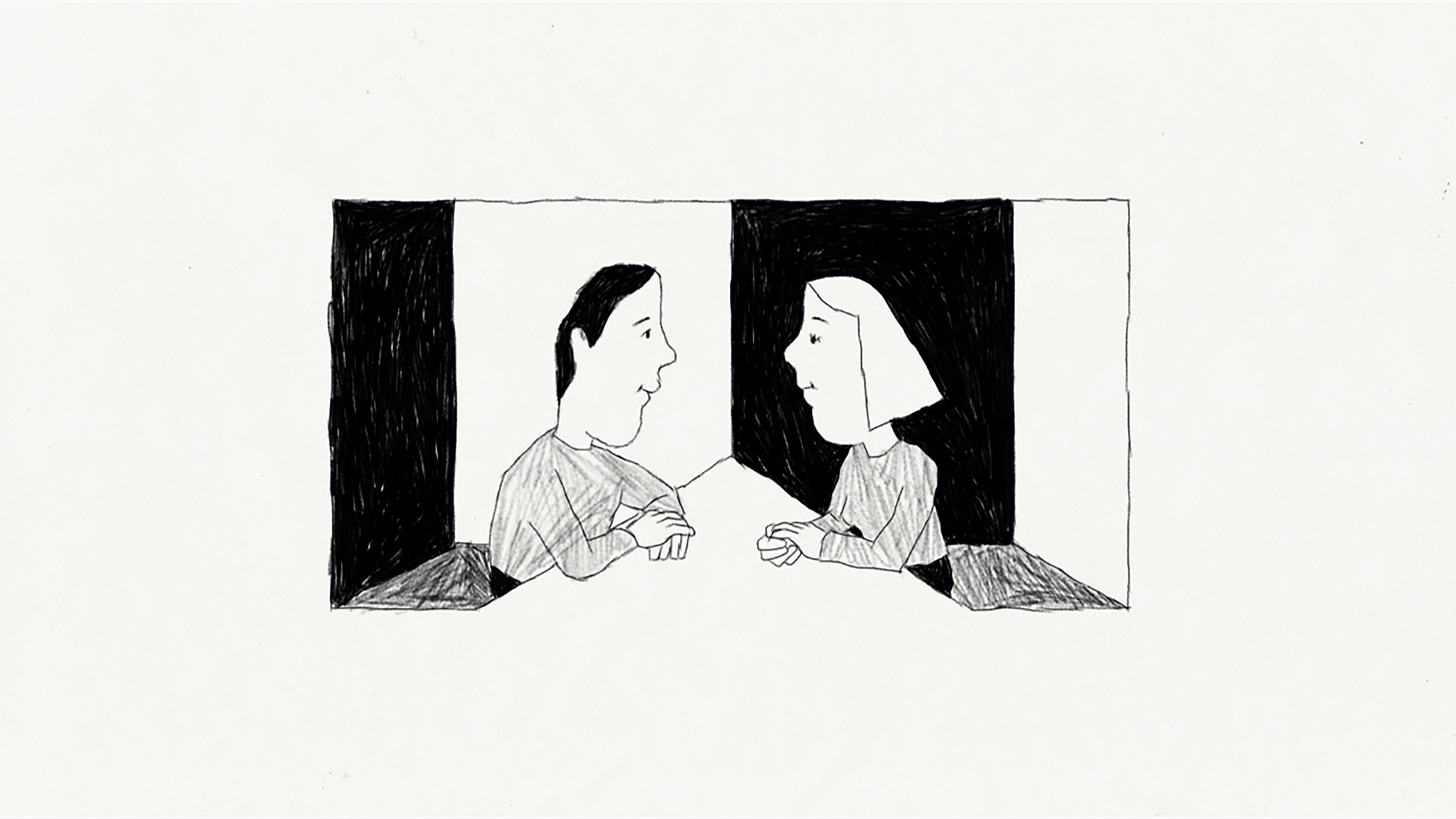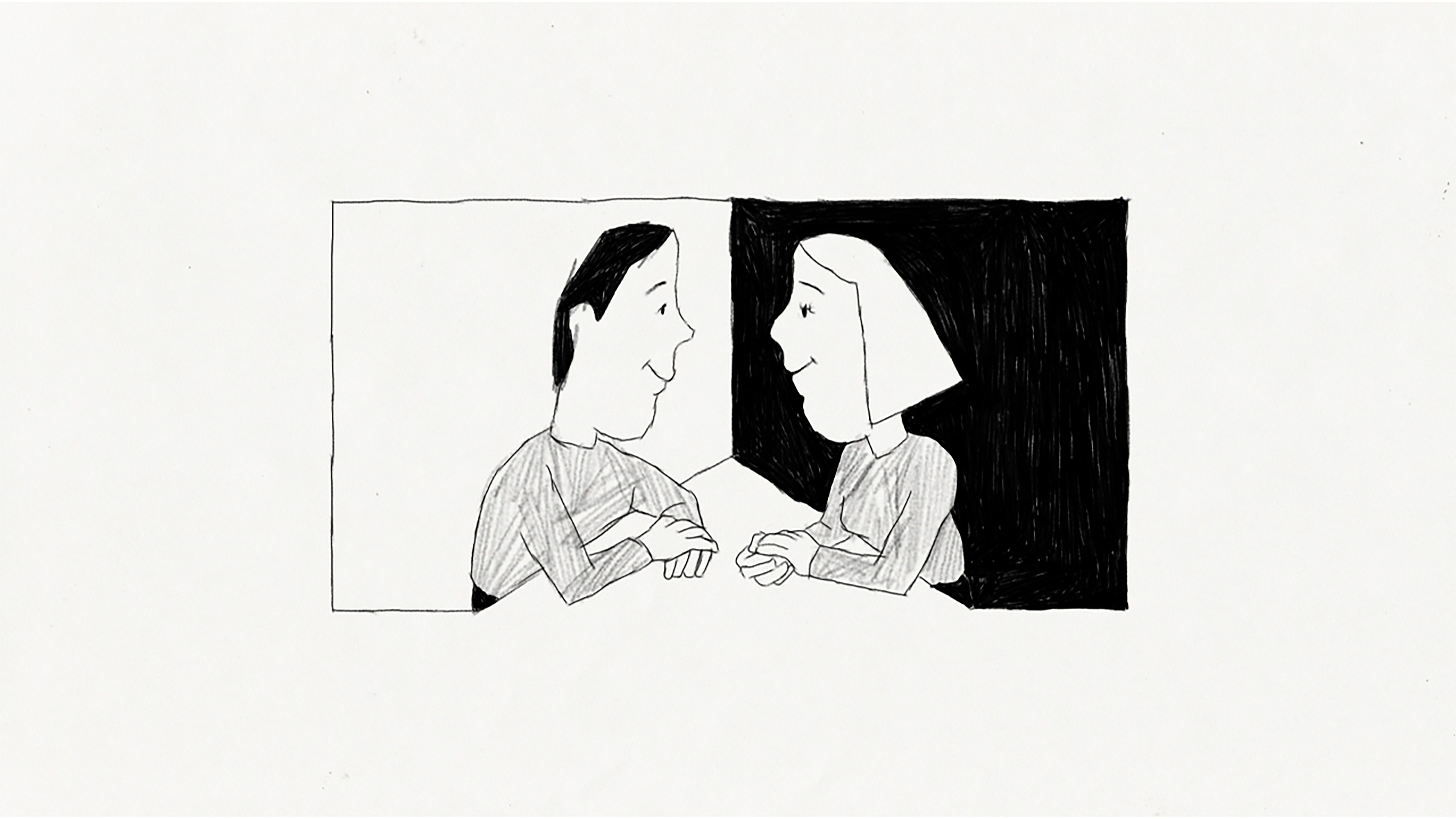 He tries to talk to her again. As usual, she seems very distant. But how can that be? She’s only at the other end of the table.