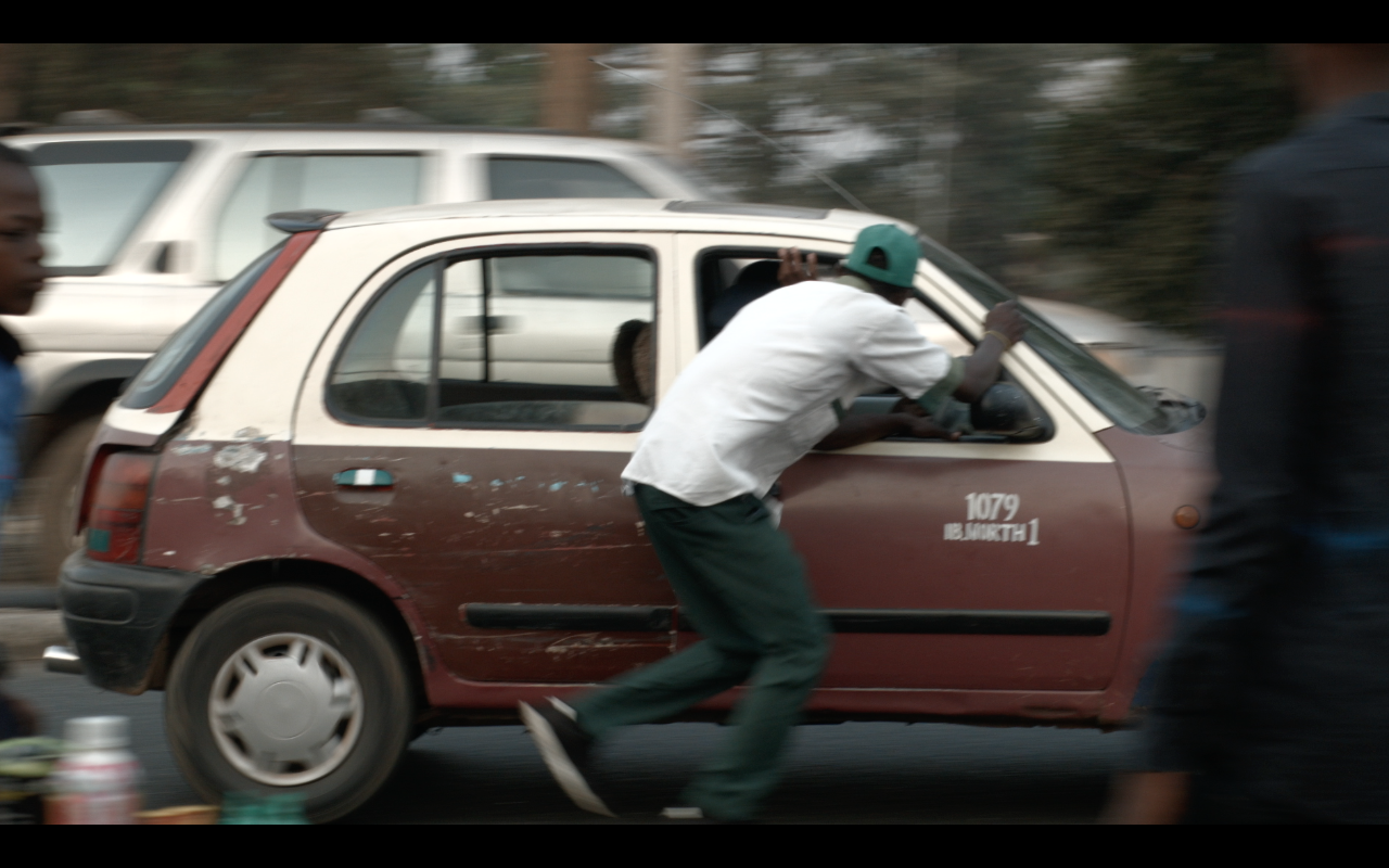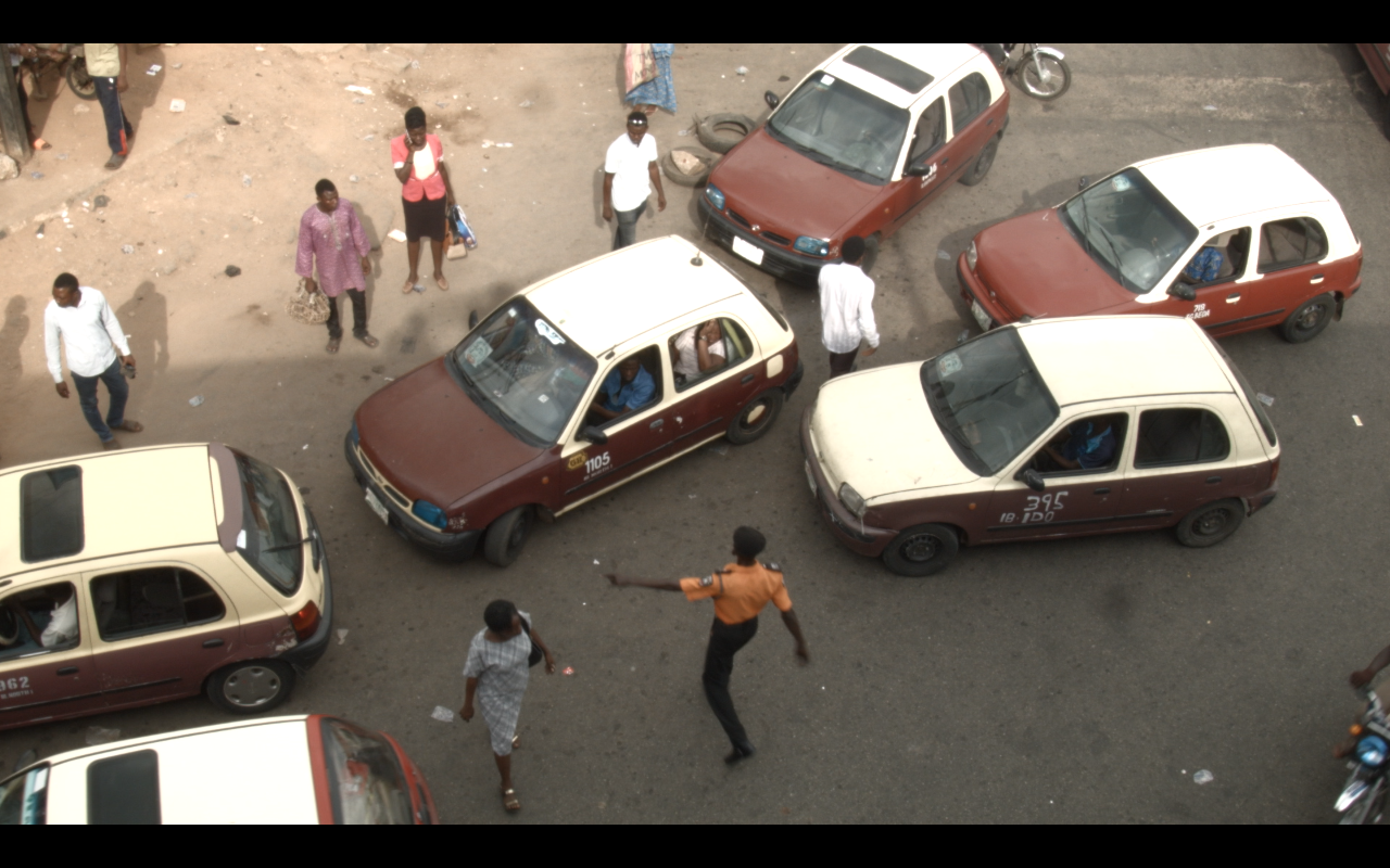Fred, an unemployed graduate like many young Nigerians, starts a new job as a taximan. Akin, meanwhile, taxes commercial vehicles for the National Transport Union. Both of them move about in the rich urban landscape of Ibadan, where Alain Kassanda's camera choreographs the multiplicity of perspectives and the perpetual balance of power at play.
