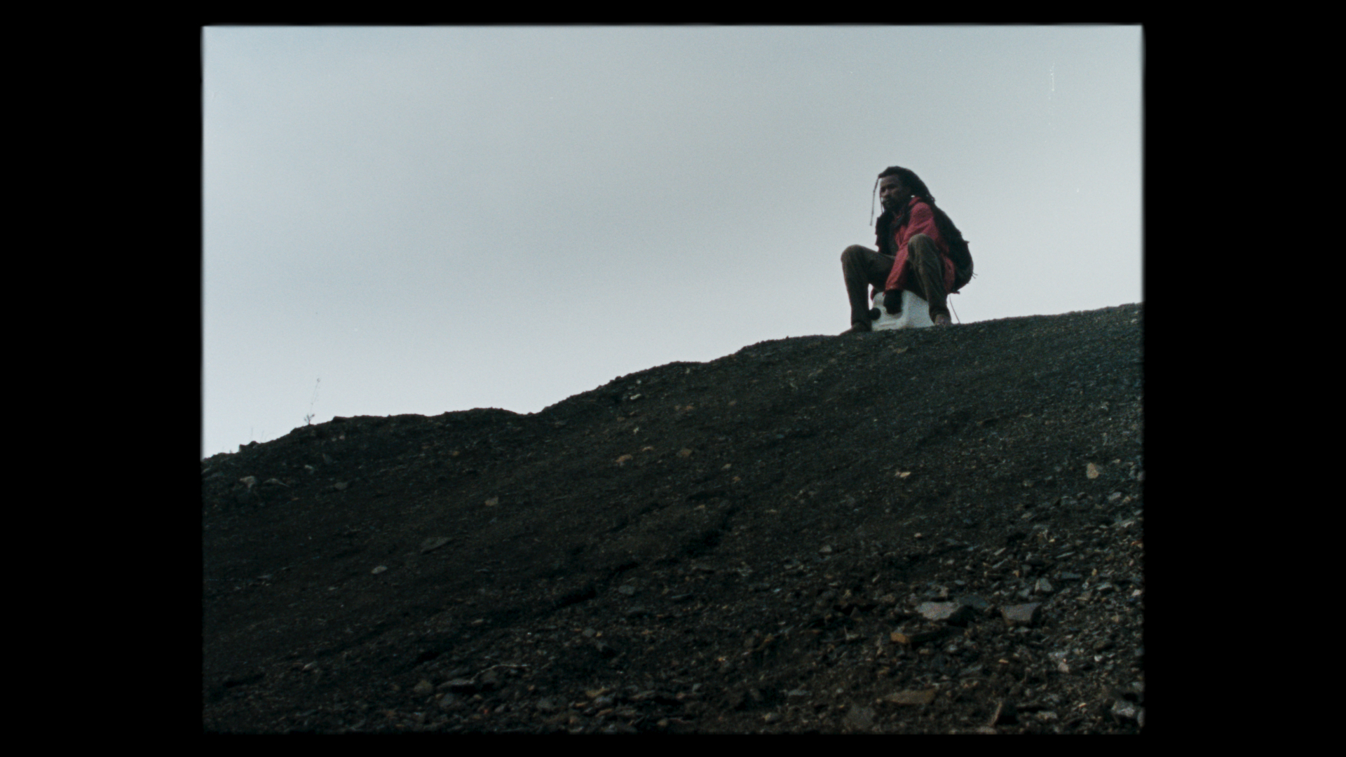 On a slag heap, where coal miners used to tramp, men are now awaiting each other.