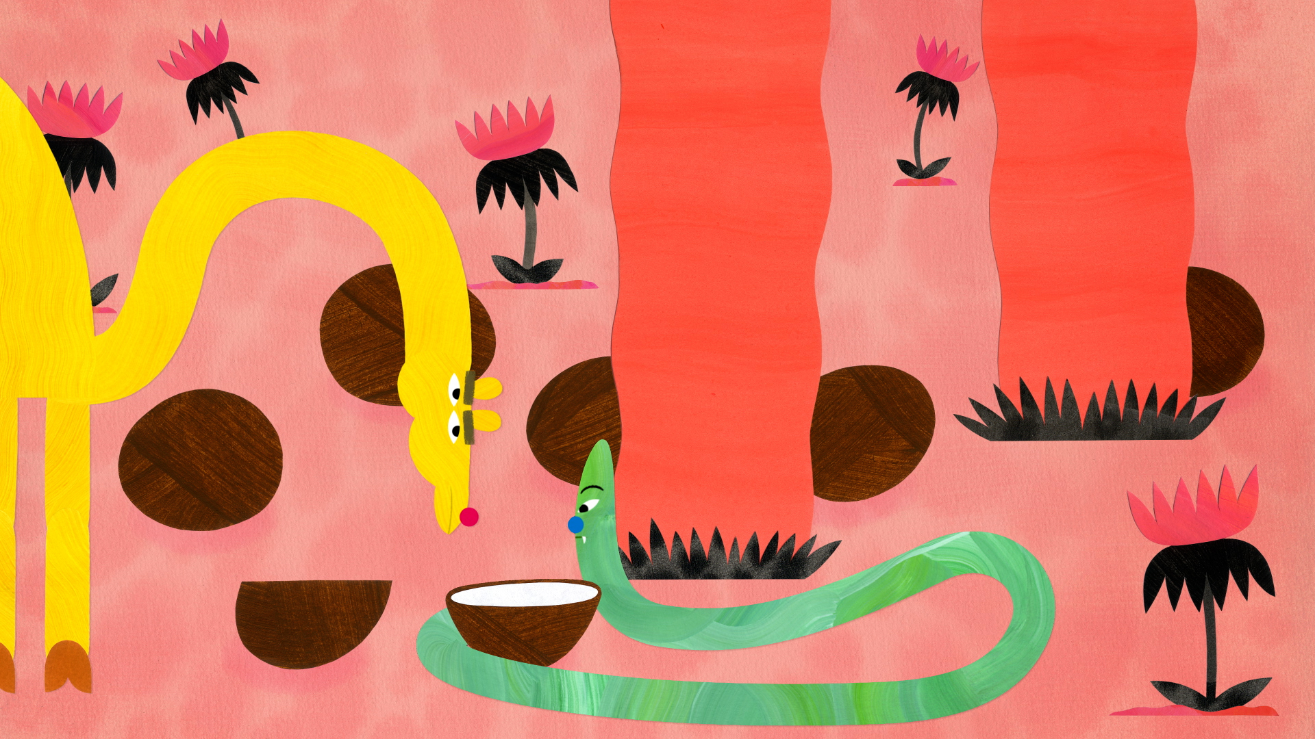 A cold-blooded snake and a hot-blooded camel become close friends.