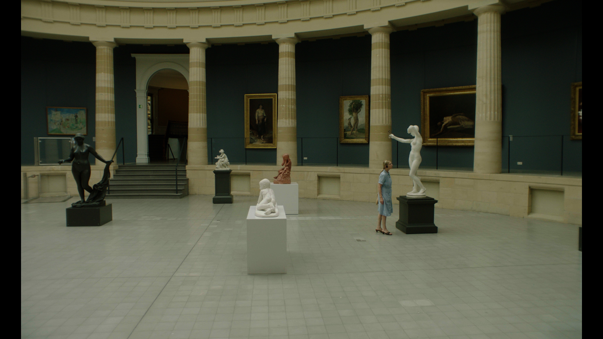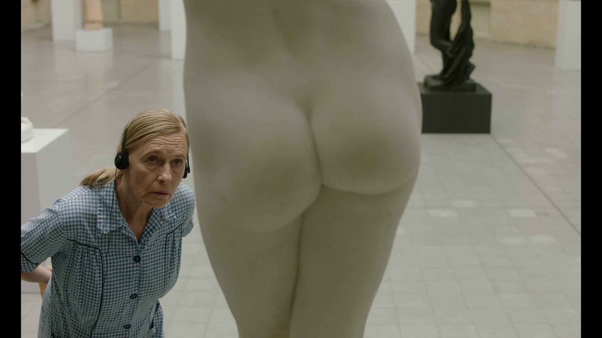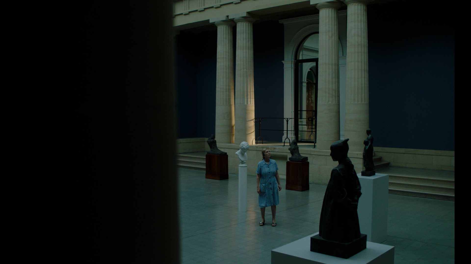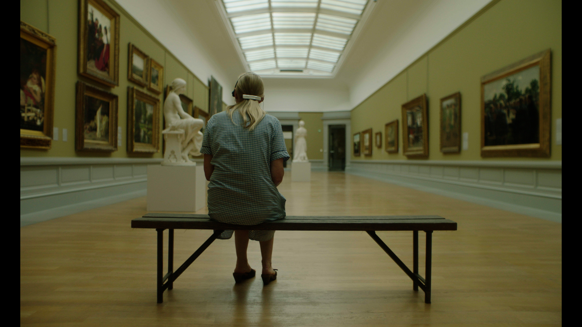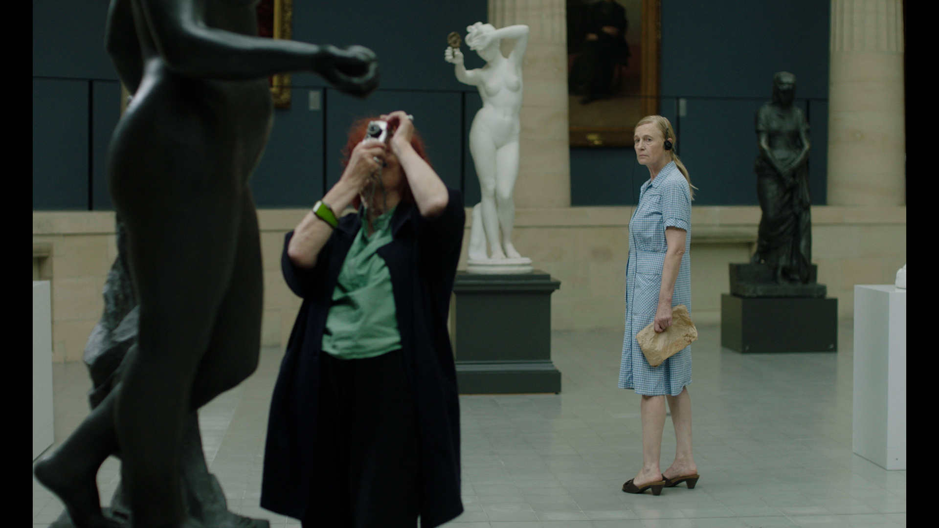 Worn out by everyday routine, fifty-nine-year-old fishmonger, Sabine, decides to leave her fish shop and ventures into the world outside of her countryside village. Her quickest escape, the village school bus, brings her to the museum of Royal Arts in Ghent, where a museum audio guide helps her find the elevation she unknowingly sought.