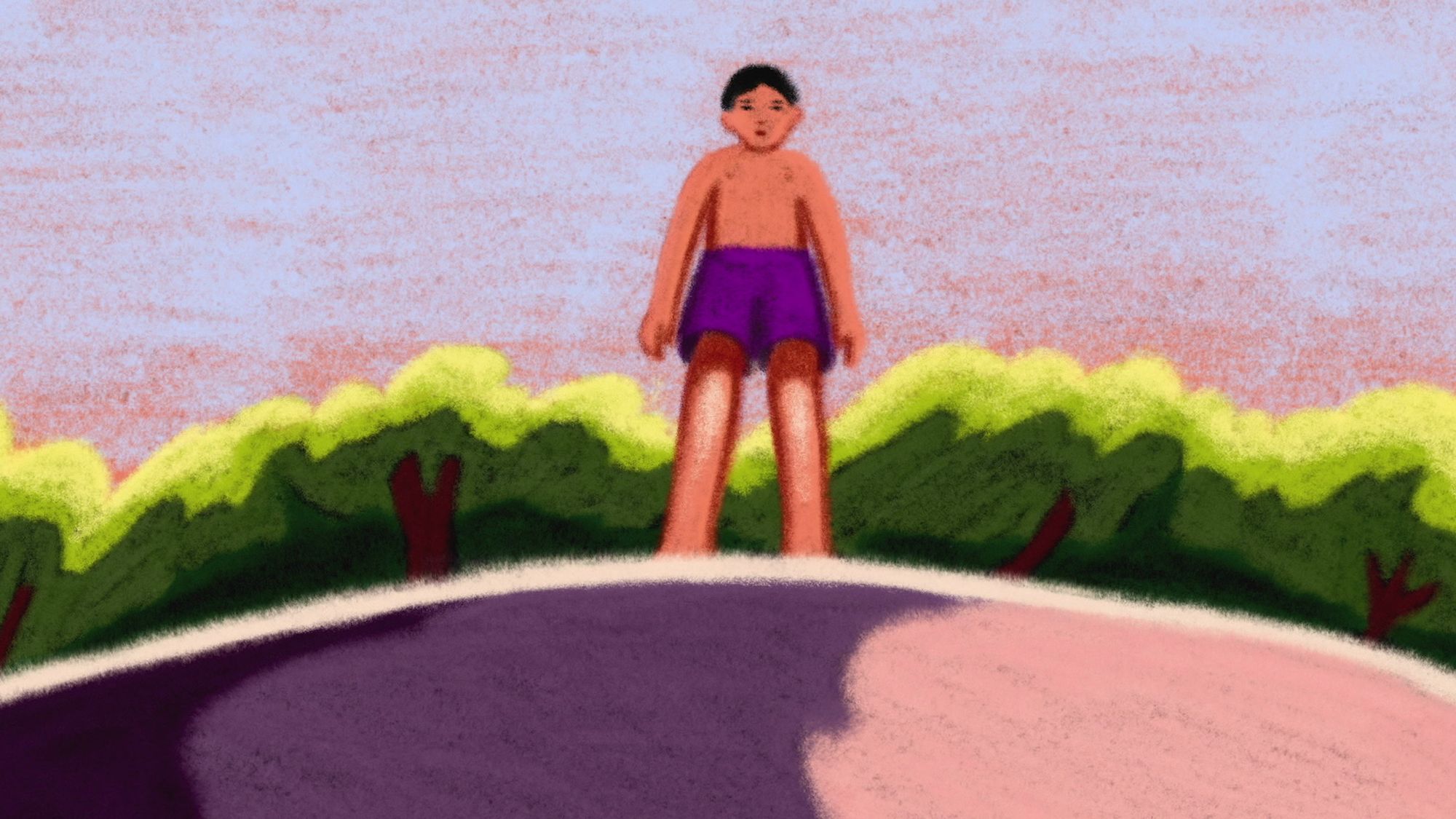 A boy finds another way to join his friends in the water below, and experiences a few moments of total freedom.