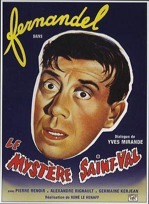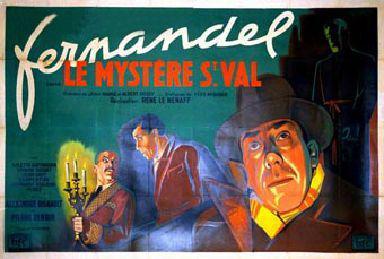Le Mystere de Saint-Val stars Fernandel as Désiré, a mousy insurance-office clerk who dreams of being a great detective. The clerk's uncle, who also happens to be his boss, tries to cure his nephew of his delusions by sending him off on a wild-goose chase. As things turn out, Désiré gets mixed up in a murder case, culminating in a spooky night in a forbidding old castle.